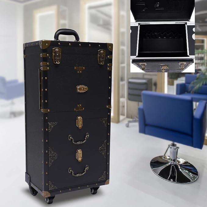 • ★【Large Capacity & Application】With 4-Tiers, this beauty salon luggage can provide you with plenty of storage space to meet your storage needs. Whether you are an artist or a hairdresser, you can put all your tools inside. This beauty salon luggage is suitable for placing hair coloring materials and tools. This beauty salon luggage is suitable for barber stores, hairdressing colleges, homes, etc.