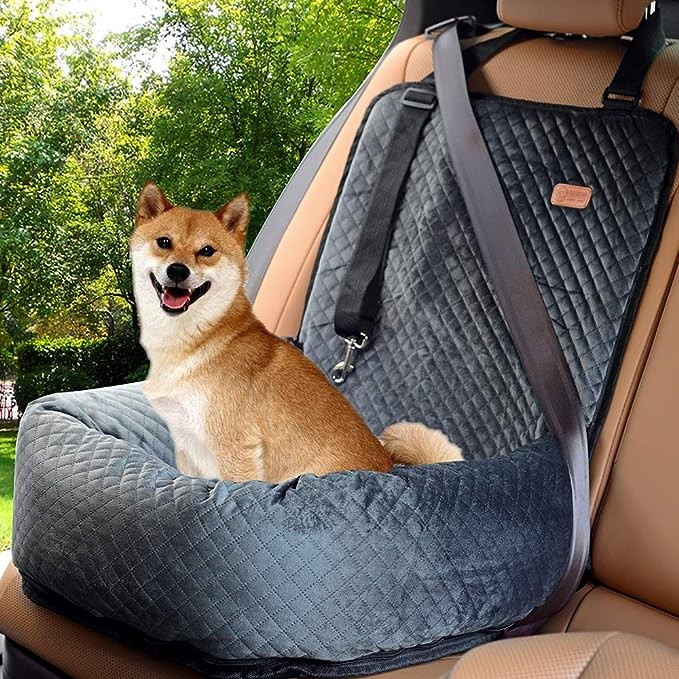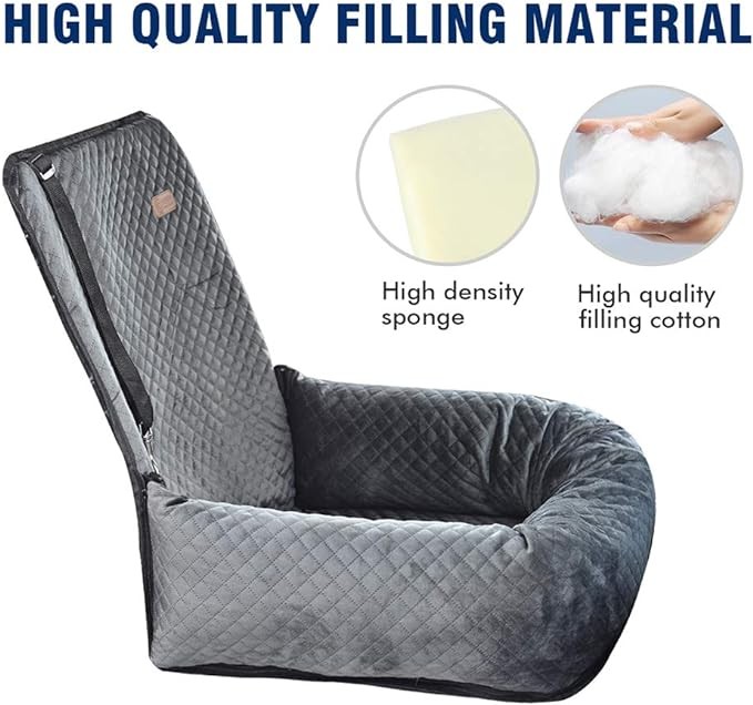 • 【Safe and Comfortable】The Pet Car Seat is made of high-quality breathable and soft composite fabric, and the internal filling is made of high-quality environmentally friendly PP cotton and high-rebound sponge,Provide perfect comfort for your dog the dog will not feel scared, anxious or vomiting when riding in the car;Provides your dog with a comfortable and safe sleeping environment during long journeys.