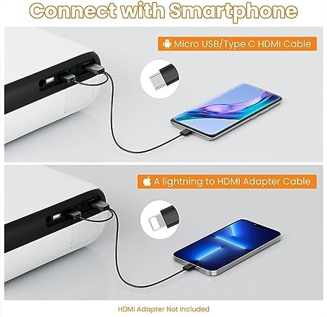 【Multimedia Compatibility】: Home theater projector equipped with HDMI/USBx2/AV/3.5mm headphone jack, compatible with Fire TV Stick, Roku, DVD, laptop, USB, computer, headphones, external speakers, iPhone Android, iPad, PS5 etc. Can be used for garden parties, home theaters, outdoor camping, etc.