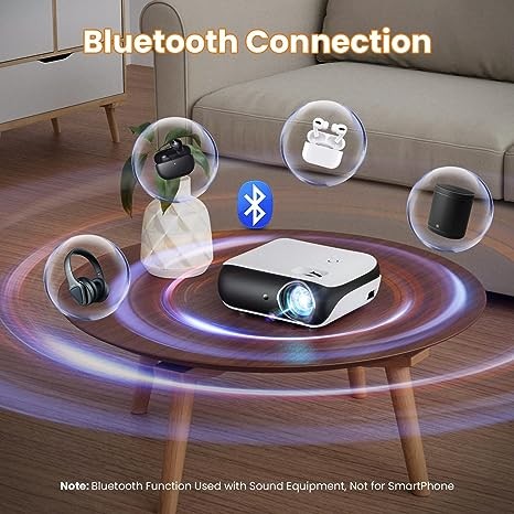 【Bluetooth 5.1 Function and HiFi Stereo Speakers】The projector is built with powerful dual speakers and the latest Bluetooth 5.1 chip, which provides the best sound effects and excellent listening experience. You can pair them together via Bluetooth technology and enjoy movies on the go without worrying about tangled cables or tripping over them. (Bluetooth does not support connecting to smartphones, only supports connecting to audio devices).