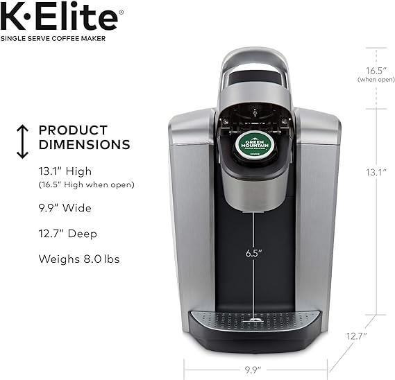 Keurig K-Elite Single-Serve K-Cup Pod Coffee Maker, Brushed Silver