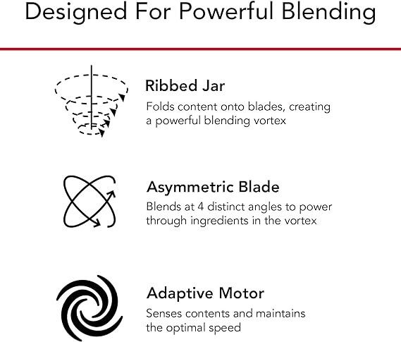 • Blending is a breeze with the 3 part blending system, made of the blender's vortex-creating ribbed jar design, unique asymmetric blade, and the smarts behind the Intelli-Speed Motor Control, which automatically senses contents and maintains the optimal speed for a better blend