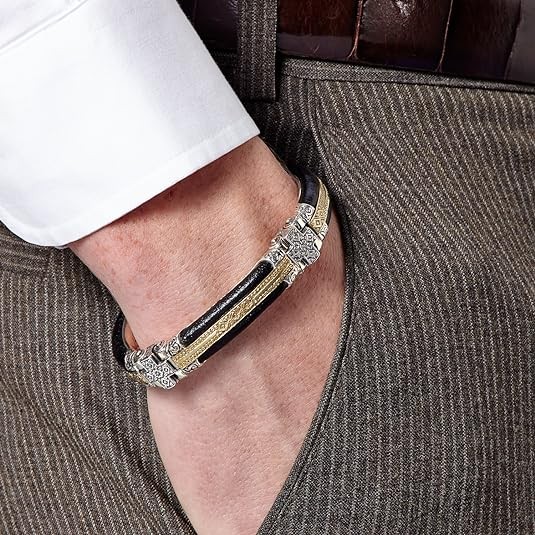 Konstantino Men's Sterling Silver, Leather & Bronze Bracelet