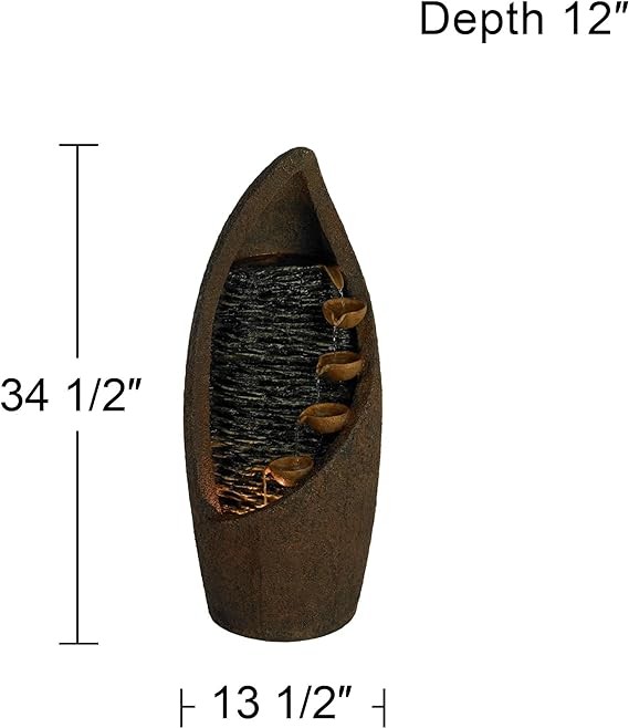 Modern Rustic Cascade Outdoor Floor Water Fountain 34 1/2" High with LED Light Cascading Decor for Garden Patio Backyard Deck Home Lawn Porch House Relaxation Exterior Balcony - John Timberland