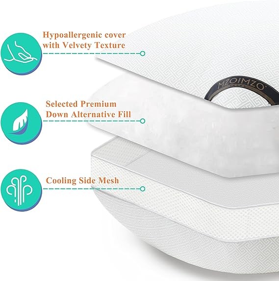 MZOIMZO Luxury Hotel Collection Bed Pillows for Sleeping- Firm Queen Size Set of 2, Gusseted Plus Cooling Side Mesh Design, Premium Down Alternative Filling for Back, Stomach or Side Sleepers, Grey