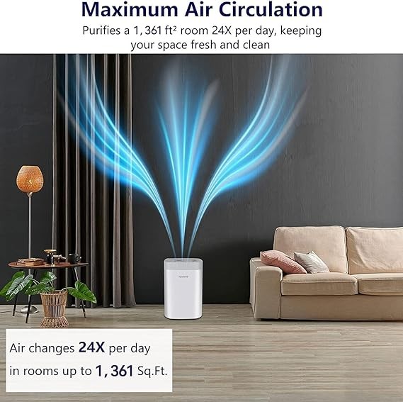 • HIGH PERFORMANCE PORTABLE AIR PURIFIER - The True HEPA air purifier is perfect for large, indoor spaces, especially large bedrooms, living rooms, kitchens, and basements. Purify a 454 ft² room 3x per hour and a 1,361 ft² room 1x per hour.