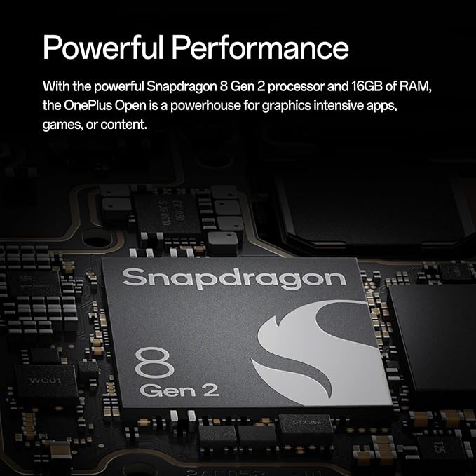 • Performance: With a powerful Snapdragon 8 Gen 2 processor and 16GB of RAM, the OnePlus Open is a powerhouse for graphics intensive apps, games, or content. The device comes charge-ready with 67W Fast Charging, getting you from 1-100% in 43 minutes.