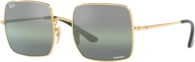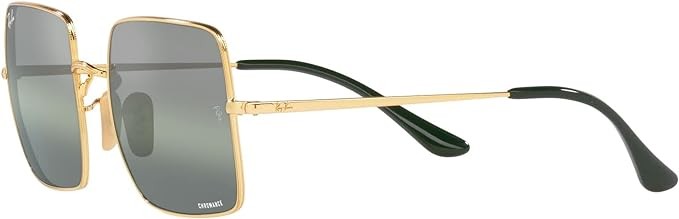 • FRAME FEATURES: RB1971 Square sunglasses feature a Square sunglasses, gold frame and green mirrored polarized Chromance lenses.