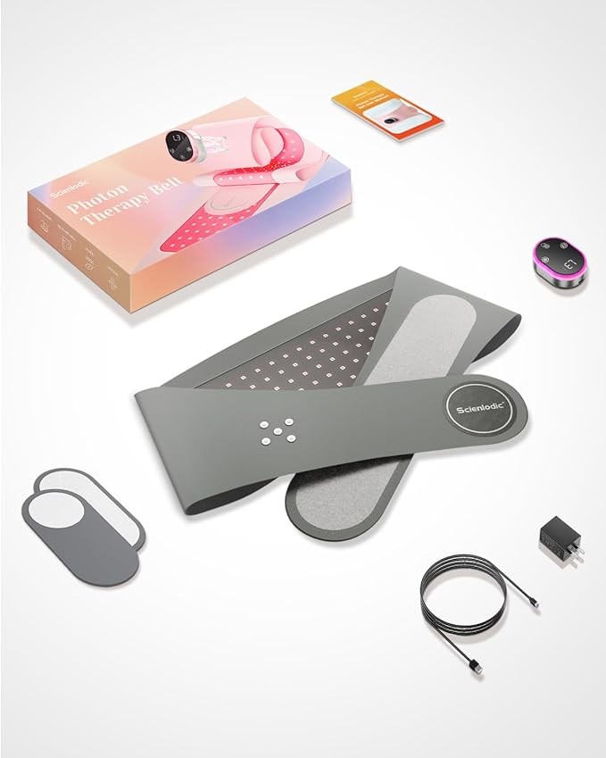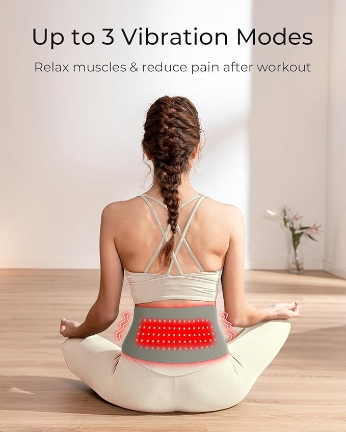 Scienlodic Wireless Red Light Therapy Belt - Rechargeable Infrared Light Therapy Device for Body - Vibration Wrap for Waist, Back, Belly, Thigh (Gray)