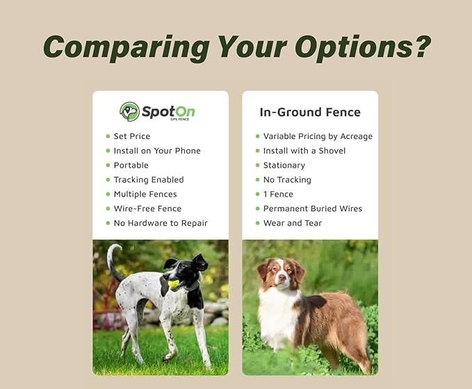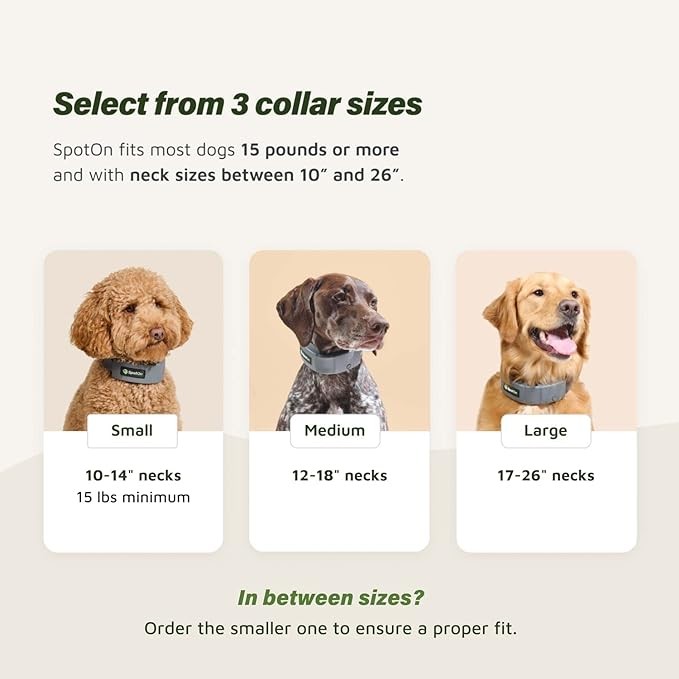 QUICK SETUP - NO SUBSCRIPTION NEEDED - Set up in minutes & manage from your phone with an easy-to-use app. Train your dog to understand the alerts and tones that are issued by the collar near the fence boundary with the SpotOn Training system - an easy DIY program developed by certified trainers. Customizable feedback with 30 levels of static correction and vibration. Lasts up to 22 hours and can fully recharge in just over one hour.