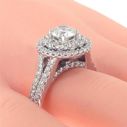 VIP Jewelry Art 2.30 CT TW GIA Certified Split Shank Halo Diamond Engagement Ring in 18k White Gold (I, VVS)